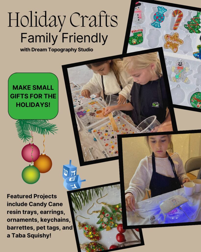December 14, 2025 @ 4:00 pm – 6:00 pm – Celebrate the Holiday season creating fun crafts and homemade gifts using UV resin! We will also be creating a large candy cane resin tray. Smaller crafts will include ornaments, pendant necklaces, keychains, post earrings, barrettes, and even a Taba Squishy! All art supplies and smocks are provided. Parent Supervision Required for younger children – Ticket […]